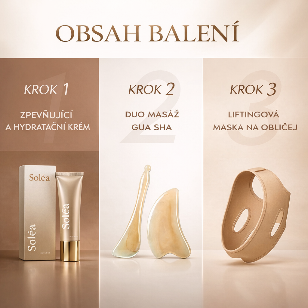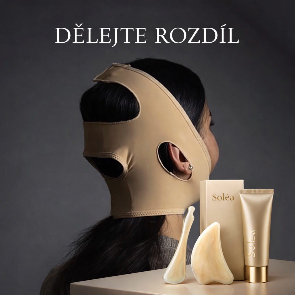 Soléa Fit™ působí proti gravitaci. Pevný tlak masky nutí svaly a pokožku držet ve zvednuté pozici, což "trénuje" buněčnou paměť. Zároveň komprese urychluje odplavování zadržované vody a toxinů (lymfodrenáž), které často způsobují oteklý vzhled a podbradek.